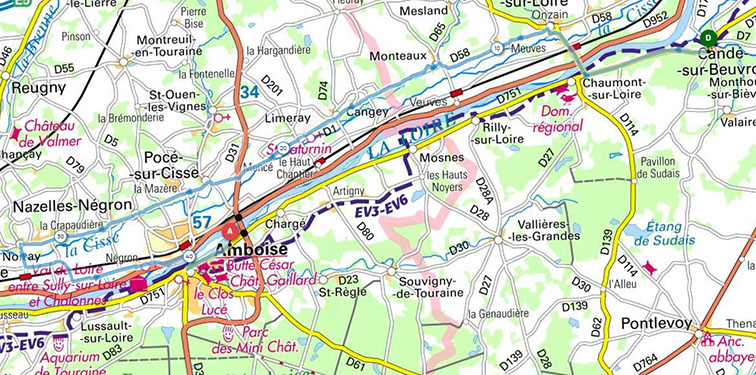 Circuit AllerResto-43, 43km, Dénivelée 153m, ID Open-Runner : ID : 23135931 Sortie du camping suivre D 751, Prendre à droite la D1 qui traverse la Loire – à gauche rue du vieux moulin, à gauche rue de Touraine jusqu’à la rue de la vallée – à droite allée de Gault, CANCEY – à gauche puis à droite rue de Limeray, Continuer de Limeray – rond-point -continuer toujours route de Limeray, POCE SUR CISSE- route d’Amboise-NOIZAY, à gauche rue jules ferry -à gauche rue du crème -à gauche rue duchesse de la Vallière, à droite-à gauche rue de la grange championTraverser la Loire – quai Charles guinot -quai des violettes -arrivée au 476 quai des violettes -LA CAVE AUX FOUEES. ,