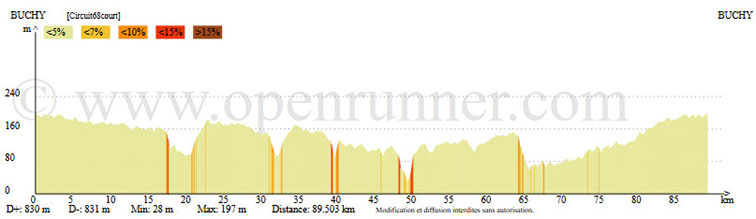 Circuit N° 68 raccourci, 90 km, Dénivelée 830m, Open-Runner