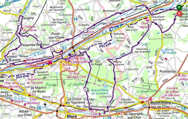 Circuit Amboise-118 147km, Dénivelée 784m, ID Open-Runner : ID : 22944853 Camping Drte puis G D751 Dir Chaumont sur L,Drte D1 Onzain, D58 ,D1 Meuves, Monteaux, Poce sur Cisse, Nazelle,Drte D79 Chancay, Drte Chateau de Valmer ,G Reugny,Drte D46 Chancay, G D78 Drte Vernou sur Brenne,D76 puis G hameau le pigeon , le verger, Negron G D5 puis drte D205,AMBOISE ,suivre GPS, quai De Gaule,pl Debré, rue Victor Hugo, rue Perrault,rue auguste thierry, rue de bel air,rue du clos bel roche,